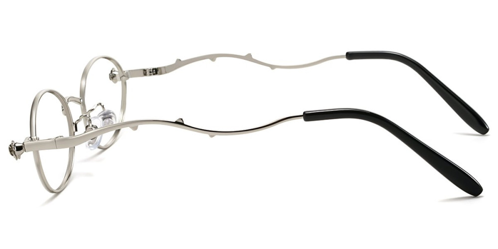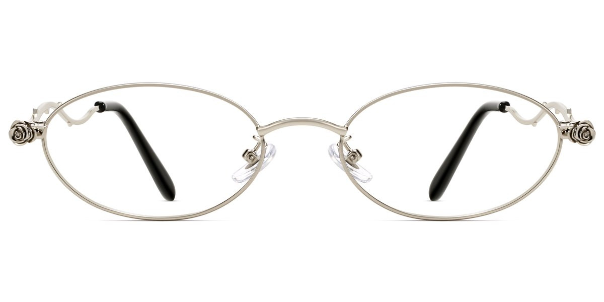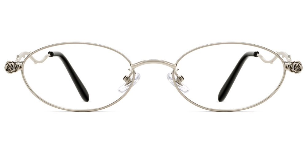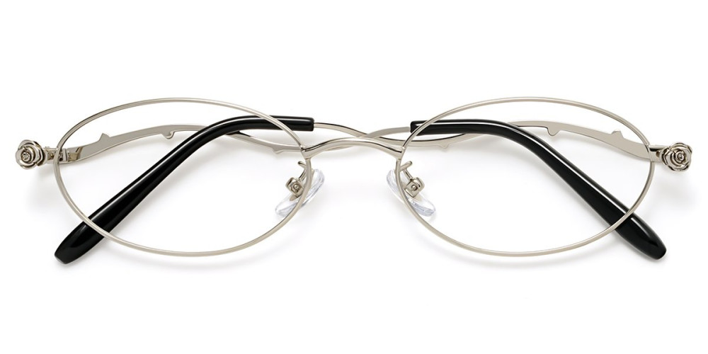 These glasses have a delicate gold oval frame. The oval shape is timeless and flattering. The little rose details on the frame add a touch of elegance and romance, making them a sophisticated choice that can elevate any outfit.