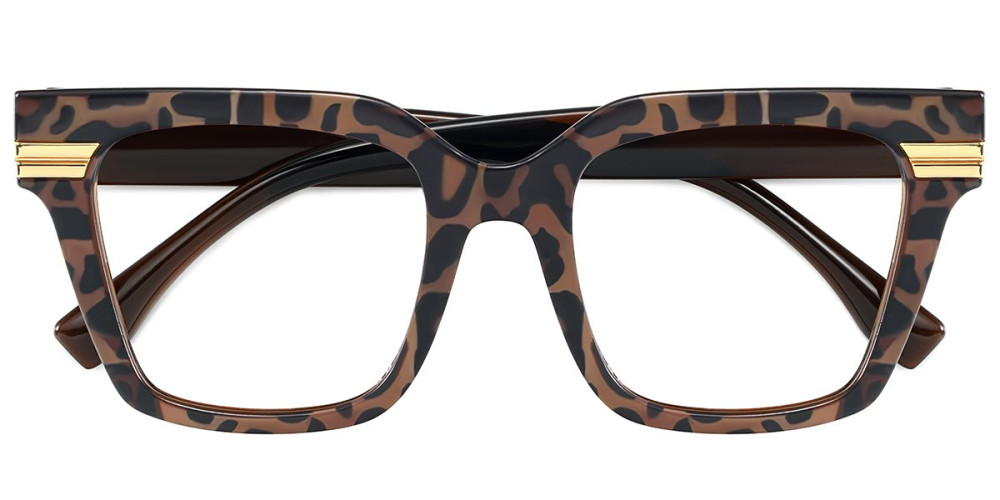 These frames present a square shape, the combination of the color/print and metallic decoration creates a harmonious blend of boldness and sophistication, catering to those who appreciate a fusion of classic and contemporary styles.