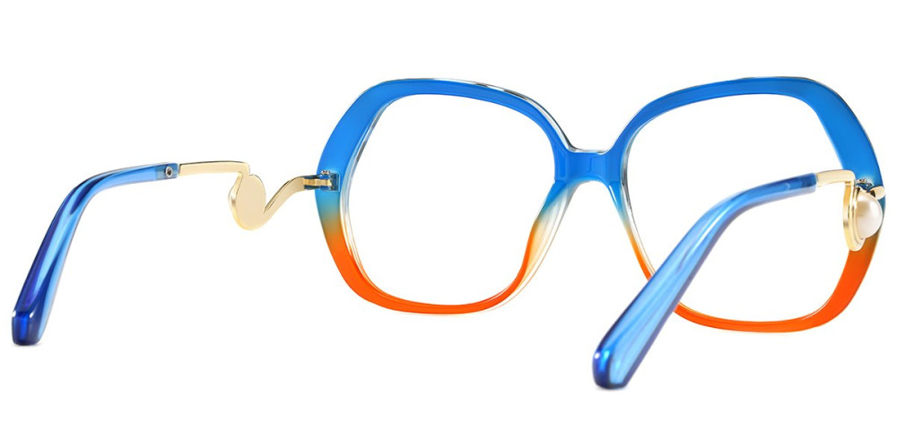 A striking oversized square frame featuring a seamless gradient effect in its material, paired with sculptural gold-toned temples adorned with a single pearl-like accent. Made of high-quality materials, durable and wear-resisting.