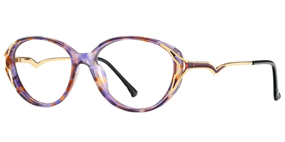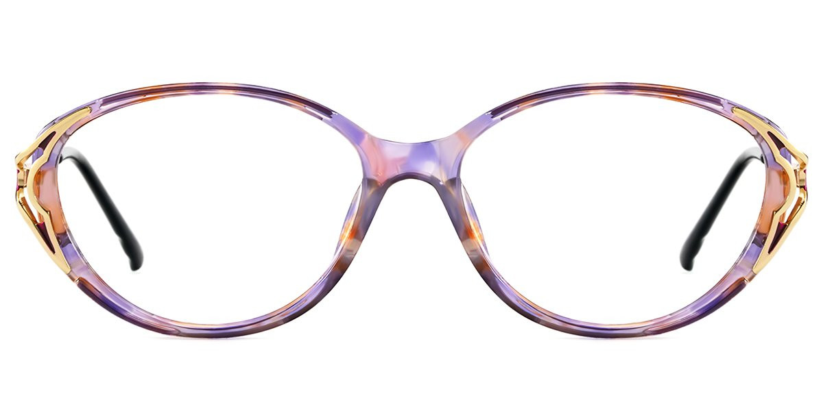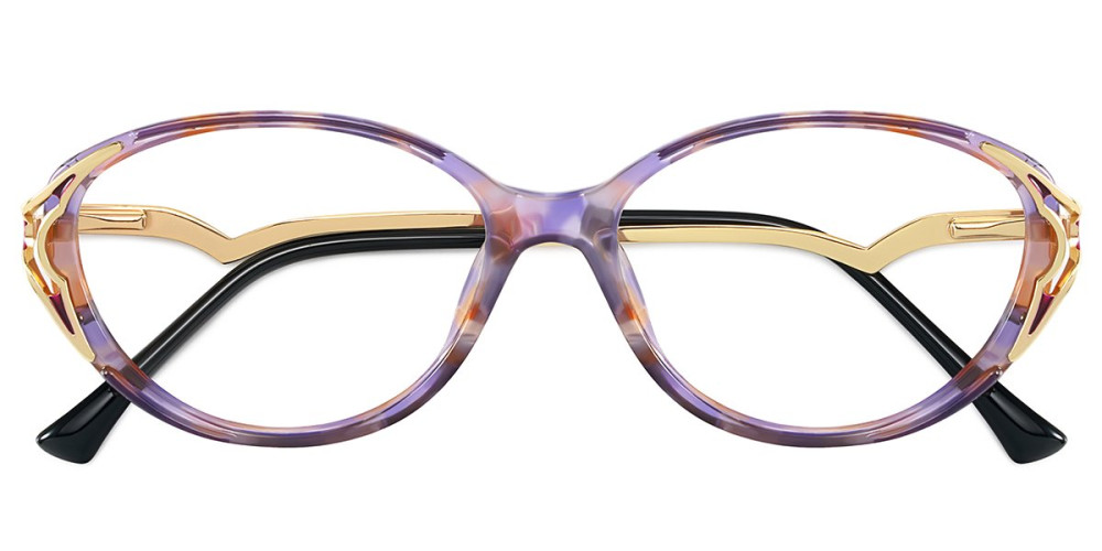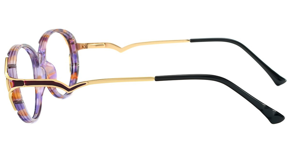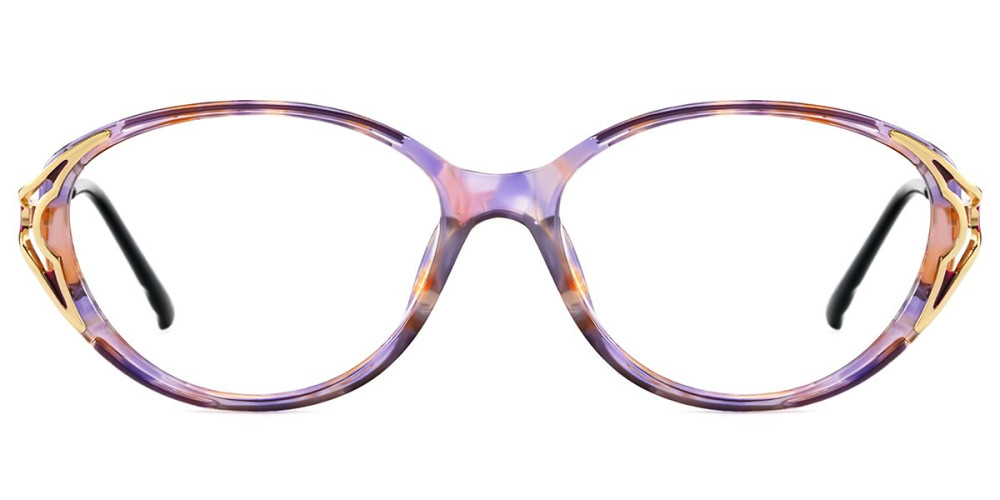 A refined oval frame, with subtle patterned detailing, complemented by sculpted temples that balance artistic charm with contemporary elegance. Crafted with spring hinges for all-day comfort. Made of TR90 materials, durable and wear-resisting.