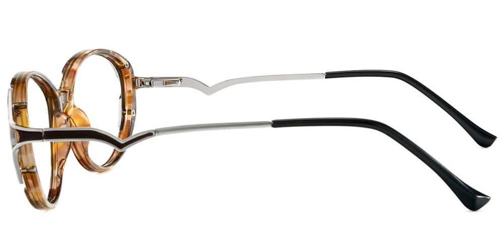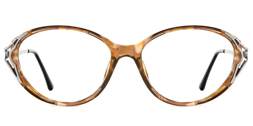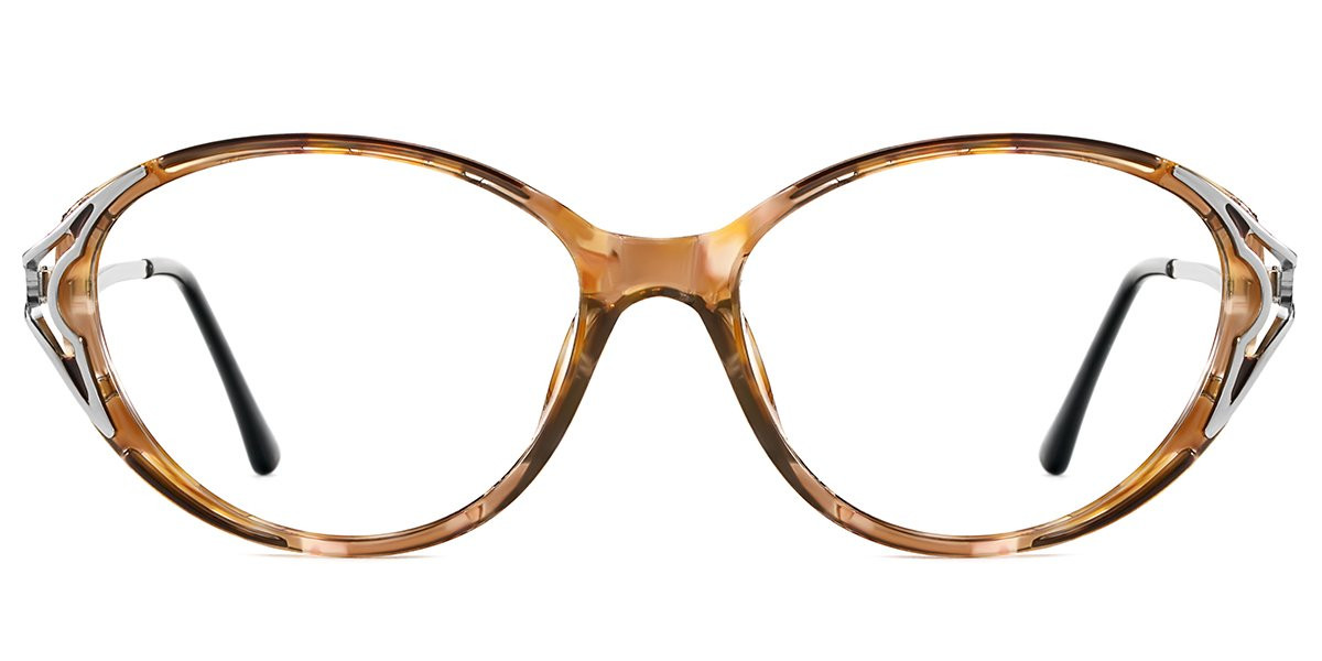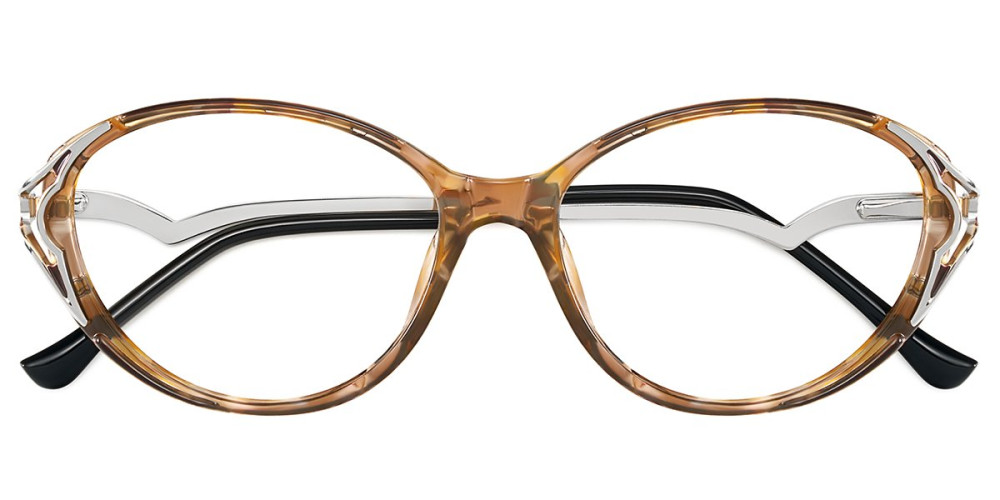 A refined oval frame, with subtle patterned detailing, complemented by sculpted temples that balance artistic charm with contemporary elegance. Crafted with spring hinges for all-day comfort. Made of TR90 materials, durable and wear-resisting.