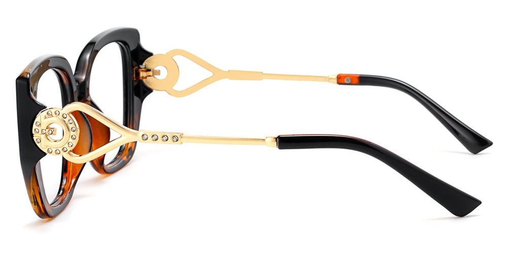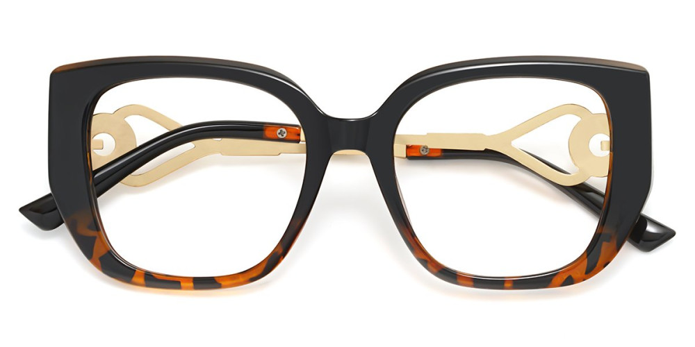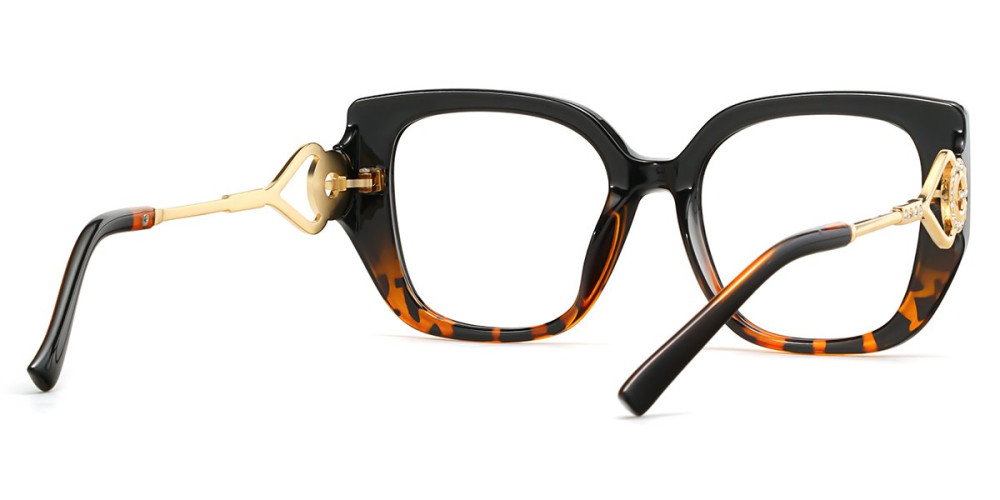 A bold square frame that makes a confident style statement. The thick front frame is balanced with striking gold temples, featuring intricate cut-out detailing and subtle embellishments for a touch of luxury. Made of high-quality materials, durable and wear-resisting.