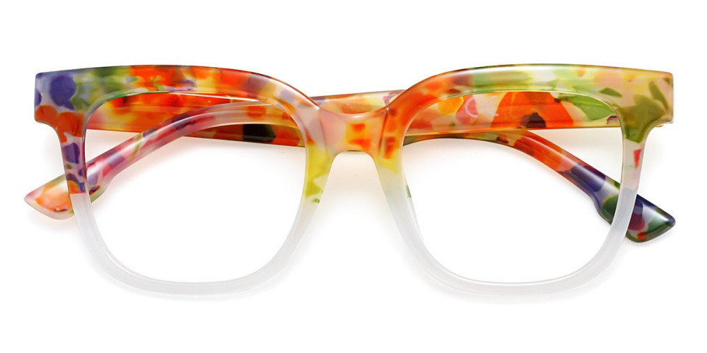 These frames feature a unique design with a floral pattern that blends into a gradient effect. The rectangle shape gives a retro - chic vibe, making them stand out as a fashionable accessory for your eyes. They are not just eyewear but a style statement.