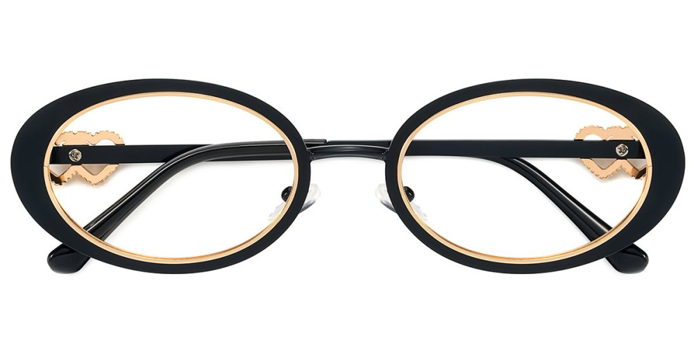 A bold oval frame that blends elegance with a touch of romance. Adds a retro charm, while the delicate heart-shaped metal detail on the temples gives it a luxurious and playful accent. Perfect for those who love timeless design with a modern twist.