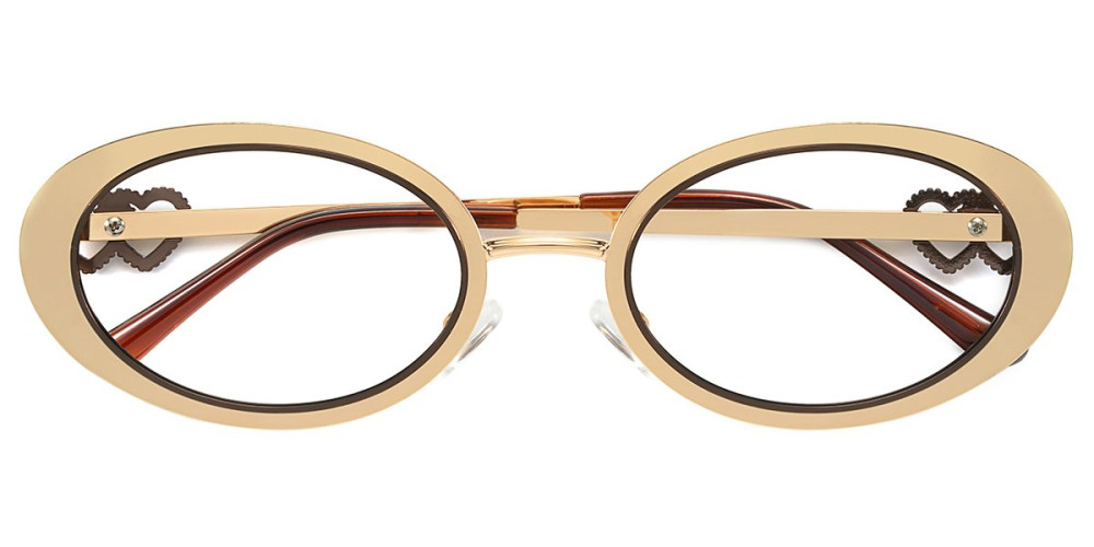 A bold oval frame that blends elegance with a touch of romance. Adds a retro charm, while the delicate heart-shaped metal detail on the temples gives it a luxurious and playful accent. Perfect for those who love timeless design with a modern twist.