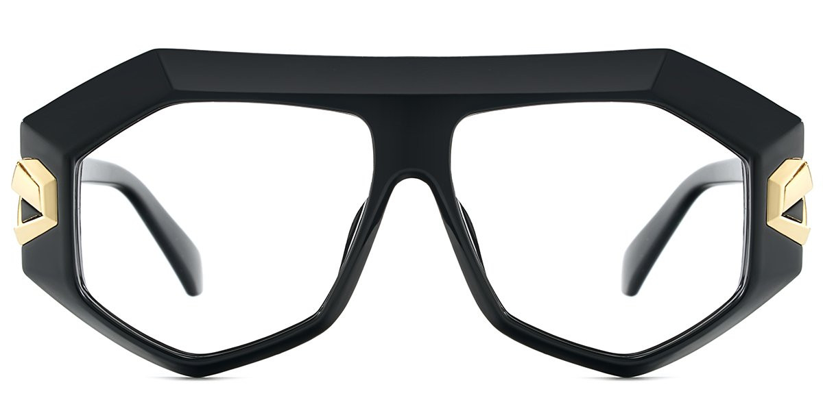 These glasses are stylish and bold with an aviator shape, giving off a super modern and edgy vibe. The large, angular lenses go well with the eye-catching metallic decorations on the sides. Those decorations make the glasses look more high-end and really make a fashion statement.