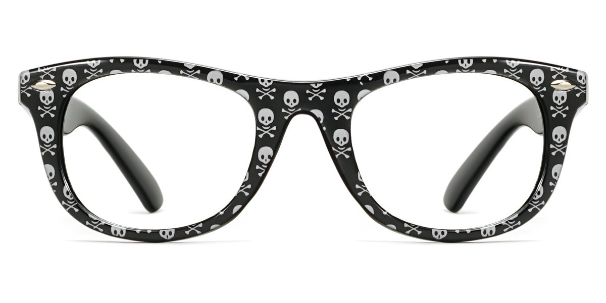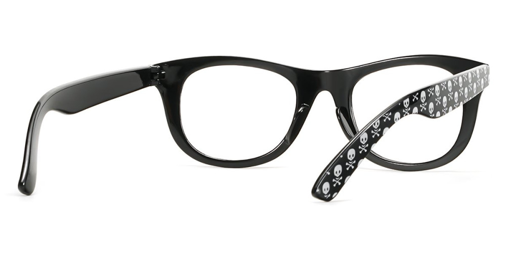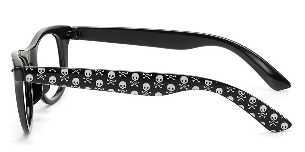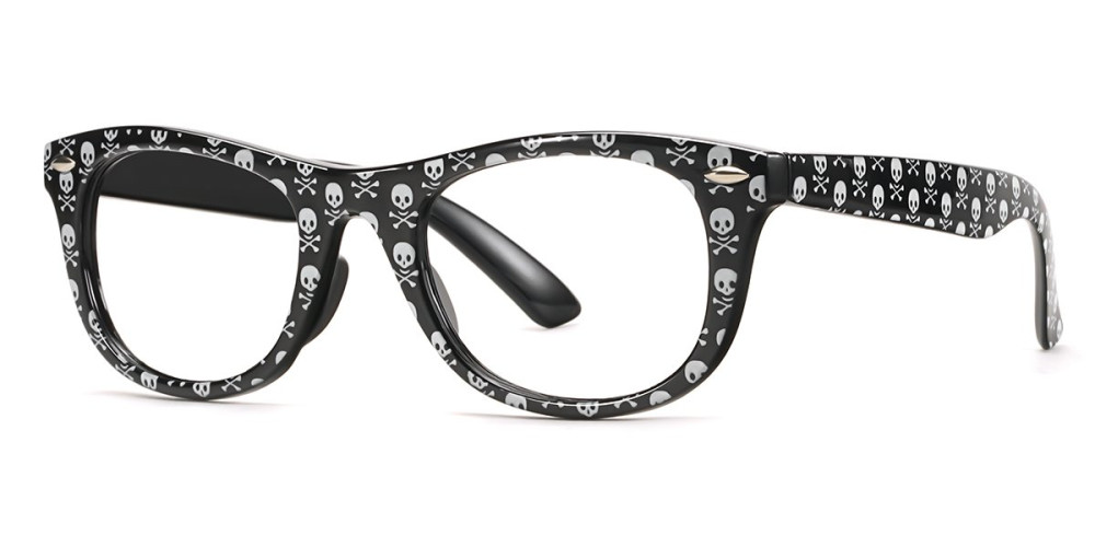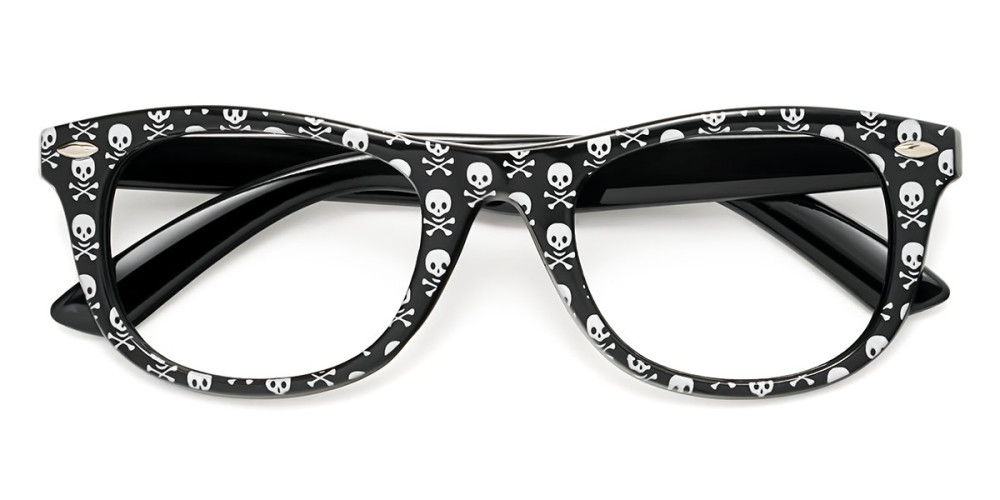 The black frame with white skull designs gives off a bold, rock - and - roll vibe. If you want to show off your unique style and stand out from the crowd, these glasses are a great choice. They're perfect for anyone who loves a bit of rebellion in their look.