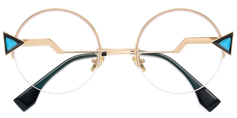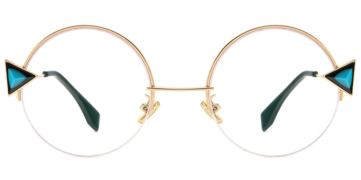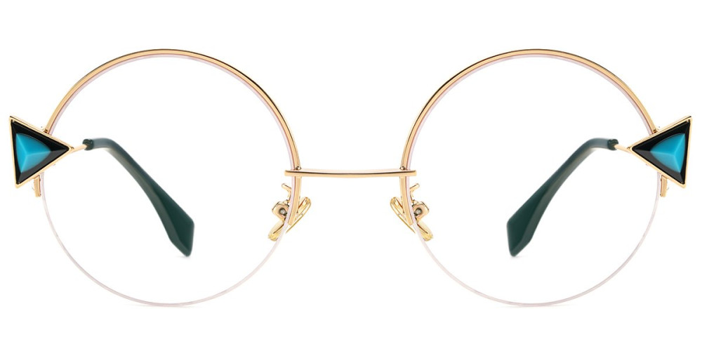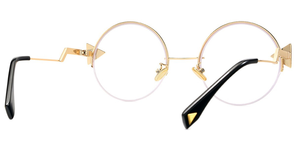 They’ve got classic round lenses, but the temples have cool triangular accents. The round shape and the sharp triangular details contrast nicely. It mixes old-time charm with a modern, stylish feel, making them really one-of-a-kind.