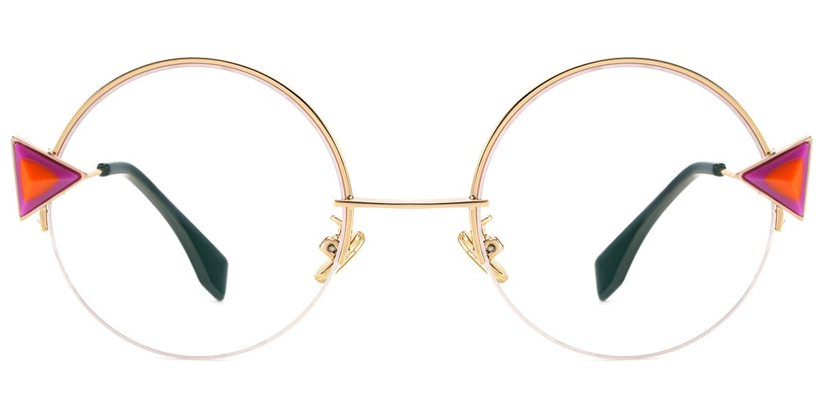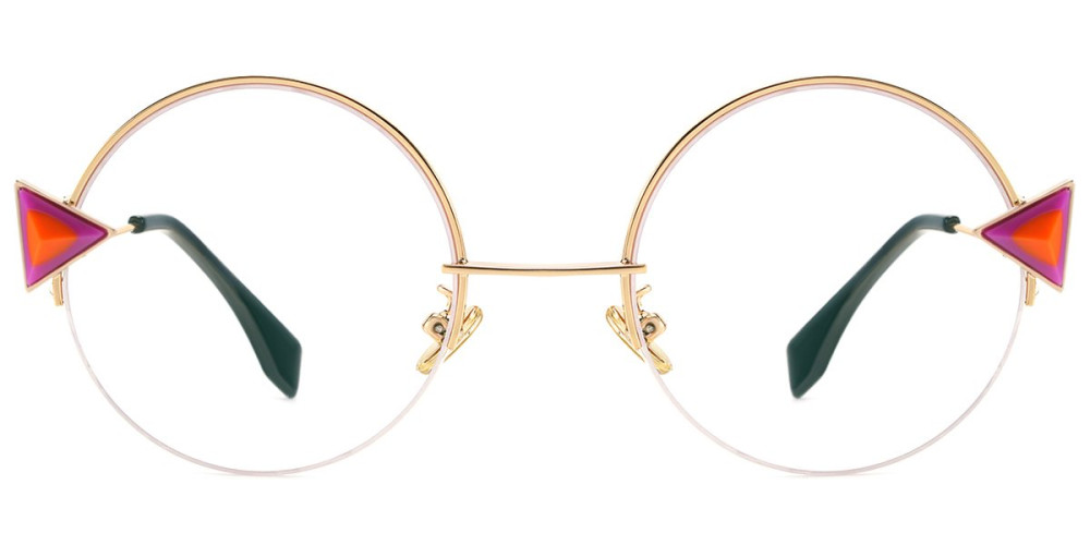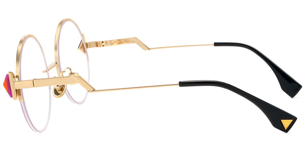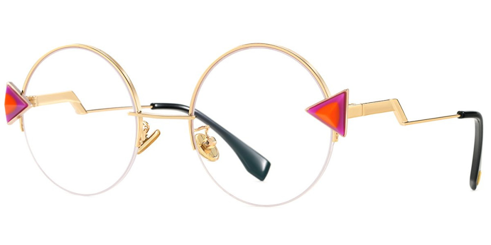 They’ve got classic round lenses, but the temples have cool triangular accents. The round shape and the sharp triangular details contrast nicely. It mixes old-time charm with a modern, stylish feel, making them really one-of-a-kind.