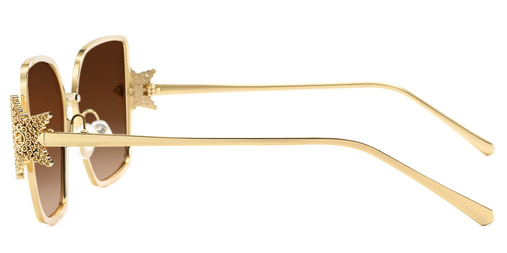 These frames showcase a bold square silhouette. The metal frame is adorned with delicate dot - like texturing along the rims, creating a refined tactile and visual effect. A standout feature is the star - shaped decoration on the temples, adding a touch of opulence and uniqueness.